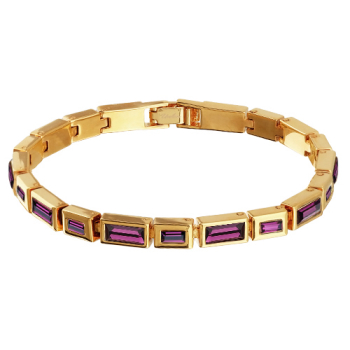 Изготовлено из ювелирного сплава на основе латуни с гальваническим покрытием золотом. Изделие украшают кристаллы SW темно-аметистового цвета. Длина 17-20см. Ширина 5мм.
