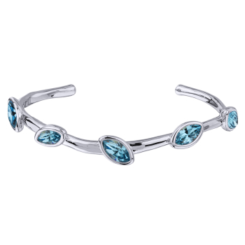 Изготовлено из ювелирного сплава на основе латуни с гальваническим покрытием родием. Изделие украшают кристаллы SW цвета аквамарин.