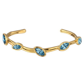 Изготовлено из ювелирного сплава на основе латуни с гальваническим покрытием золотом. Изделие украшают кристаллы SW цвета аквамарин.