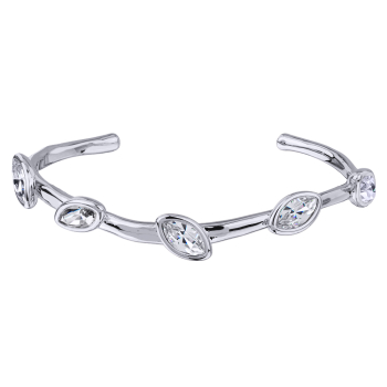 Изготовлено из ювелирного сплава на основе латуни с гальваническим покрытием родием. Изделие украшают кристаллы SW белого цвета.