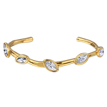 Изготовлено из ювелирного сплава на основе латуни с гальваническим покрытием золотом. Изделие украшают кристаллы SW белого цвета.