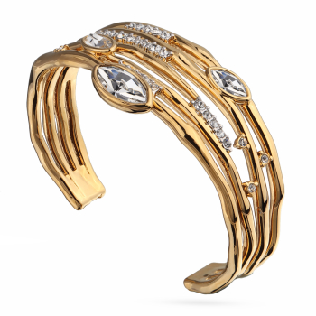 Изготовлено из ювелирного сплава на основе латуни с гальваническим покрытием золотом и родием. Изделие украшают кристаллы SW белого цвета. Ширина 2см.