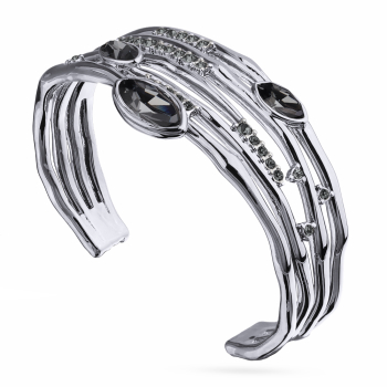 Изготовлено из ювелирного сплава на основе латуни с гальваническим покрытием родием. Изделие украшают кристаллы SW темно-серого цвета. Ширина 2см.