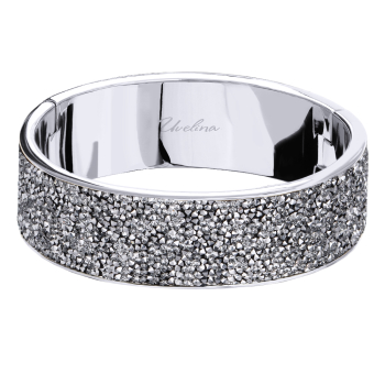 Изготовлено из ювелирного сплава на основе латуни с гальваническим покрытием родием. Изделие украшают кристаллы SW серебристого цвета. Ширина браслета 2см. Пружинный механизм отвода.