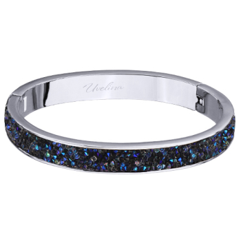 Изготовлено из ювелирного сплава на основе латуни с гальваническим покрытием родием. Изделие украшают кристаллы SW синего цвета. Ширина браслета 8мм. Пружинный механизм отвода.