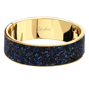 Изготовлено из ювелирного сплава на основе латуни с гальваническим покрытием золотом. Изделие украшают кристаллы SW синего цвета. Ширина браслета 2см. Пружинный механизм отвода.