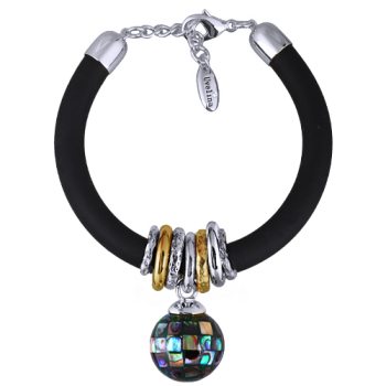 Изготовлено из ювелирного сплава на основе латуни с гальваническим покрытием золотом и родием. Изделие украшает гелиотис диаметром 16мм. Длина черного каучукового шнурка 19см, диаметр 8мм. Замок-карабин с удлинителем 3см.