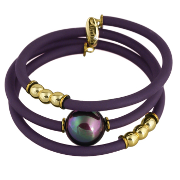 Изготовлено из ювелирного сплава на основе латуни с гальваническим покрытием золотом. Изделие украшают жемчуг Майорка диаметром 16мм цвета бургунди хамелеон и лиловый каучуковый шнурок.