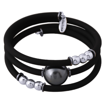 Браслет Гевея (Майорка 16мм темно-серая, каучук черный; покрытие родий), Есть комплект