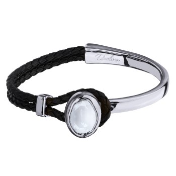 Изготовлено из ювелирного сплава на основе латуни с гальваническим покрытием родием. Изделие украшают кристаллы SW цвета белый электрик и черная кожа. Размер украшения 17х13мм. Длина браслета 17см.