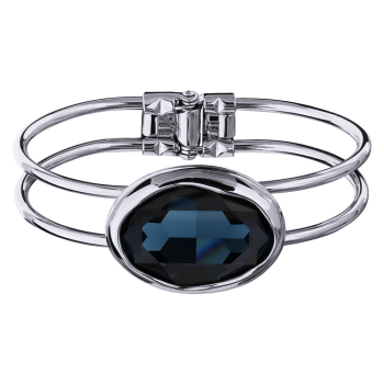 Изготовлено из ювелирного сплава на основе латуни с гальваническим покрытием родием. Изделие украшают кристаллы SW темно-синего цвета. Размер кристалла 30х22мм. Размер браслета 6.2х4.5см.