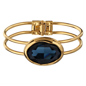Изготовлено из ювелирного сплава на основе латуни с гальваническим покрытием золотом. Изделие украшают кристаллы SW темно-синего цвета. Размер кристалла 30х22мм. Размер браслета 6.2х4.5см.
