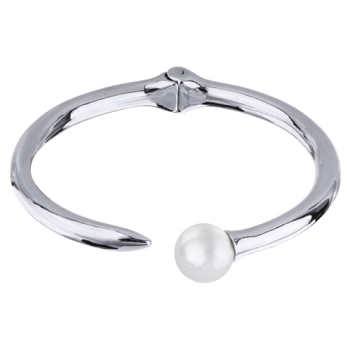 Изготовлено из ювелирного сплава на основе латуни с гальваническим покрытием родием. Изделие украшает майорский круглый жемчуг белого цвета диаметром 12мм. Пружинный механизм отвода.