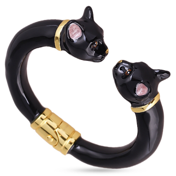 Браслет Кошка (эмаль черная; покрытие золото), Есть комплект