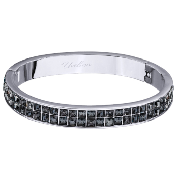 Изготовлено из ювелирного сплава на основе латуни с гальваническим покрытием родием. Изделие украшают кристаллы SW темно-серого цвета. Ширина браслета 0, 8см.