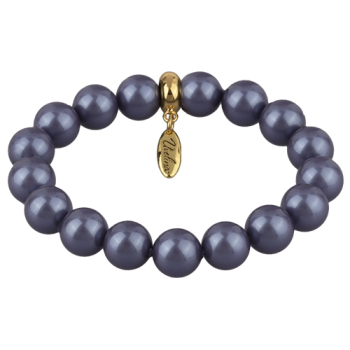 Изготовлено из ювелирного сплава на основе латуни с гальваническим покрытием золотом. Изделие украшает круглый жемчуг Майорка черничного цвета диаметром 12мм. 17 бусин.