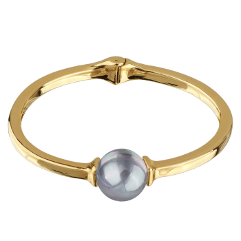Изготовлено из ювелирного сплава на основе латуни с гальваническим покрытием золотом. Изделие украшает майорский круглый жемчуг серо-голубого цвета диаметром 16мм. Пружинный механизм отвода.