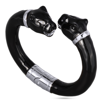Браслет Пантера (эмаль черная, кристаллы SW белые; покрытие родий), Есть комплект