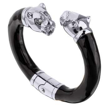 Браслет Пантера (эмаль черная, кристаллы SW белые; покрытие родий), Есть комплект