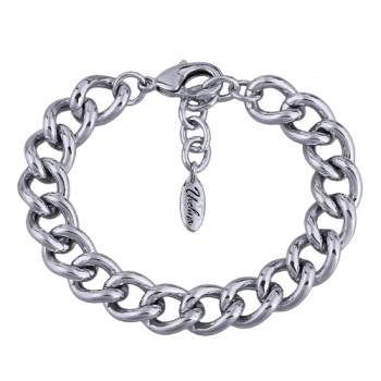 Изготовлено из ювелирного сплава на основе латуни с гальваническим покрытием родием. Ширина 1см. Длина 18см. Замок-карабин с удлинителем 3см.