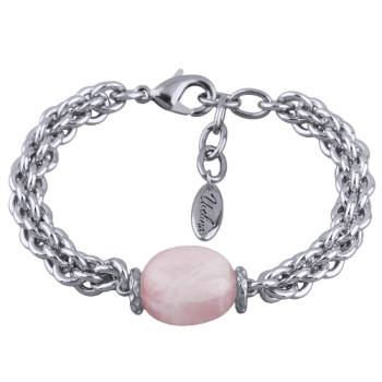 Браслет Терра (розовый кварц 15мм, покрытие родий) 17-22см, Есть комплект