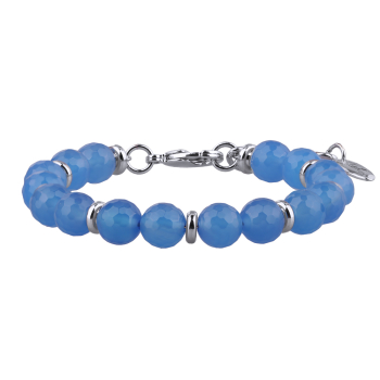 Изготовлено из ювелирного сплава на основе латуни с гальваническим покрытием родием. Изделие украшает натуральный васильковый агат диаметром мм. Длина 17см. Замок-карабин с удлинителем 5см.
