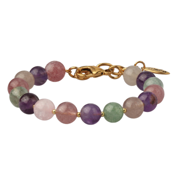 Изготовлено из ювелирного сплава на основе латуни с гальваническим покрытием золотом. Изделие украшает разноцветный кварц диаметром 8мм. Длина 17см. Замок-карабин с удлинителем 5см.