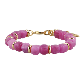 Изготовлено из ювелирного сплава на основе латуни с гальваническим покрытием золотом. Изделие украшает натуральный кварц малинового цвета диаметром 7-8мм. Длина 17см. Замок-карабин с удлинителем 3см.