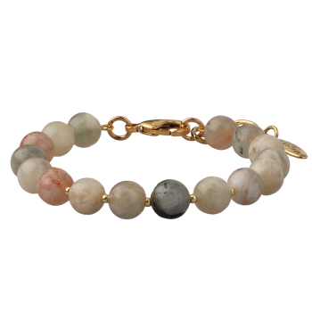 Браслет Селена (опал 8мм бежевый; покрытие золото) 17-21см, Есть комплект