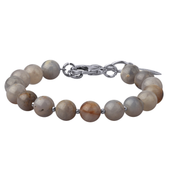 Браслет Селена (опал 8мм серо-бежевый; покрытие родий) 17-21см, Есть комплект