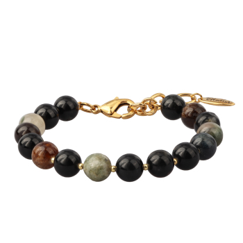Браслет Селена (турмалин 8мм микс; покрытие золото) 17-22см, Есть комплект