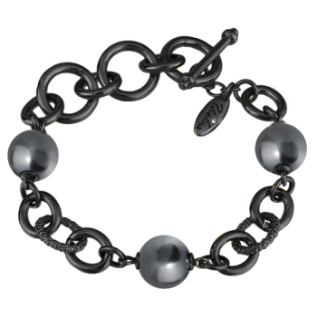 Изготовлено из ювелирного сплава на основе латуни с гальваническим покрытием черным родием. Изделие украшает майорский круглый жемчуг темно — серого цвета диаметром 12мм. Длина браслета 18см. Застёжка в форме якоря с удлинителем 3см.
