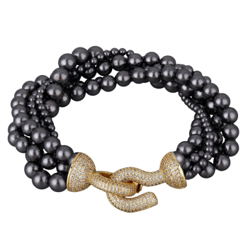 Изготовлено из ювелирного сплава на основе латуни с гальваническим покрытием золотом. Изделие украшают темно-серый жемчуг Майорка диаметром 4-6мм и белый фианит Длина 20см.