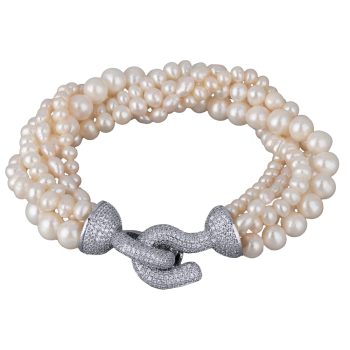 Браслет Течение (жемчуг белый 5-7мм, фианиты белые; покрытие родий) 20см, Есть комплект