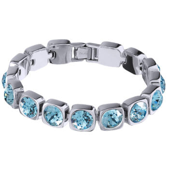 Браслет Теннис (кристаллы SW аквамарин 8мм; покрытие родий) 17-19см, Есть комплект