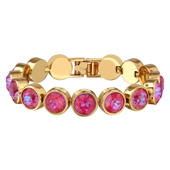 Изготовлено из ювелирного сплава на основе латуни с гальваническим покрытием золотом. Изделие украшают кристаллы SW королевского красного цвета диаметром 8мм. Длина 17-20см.