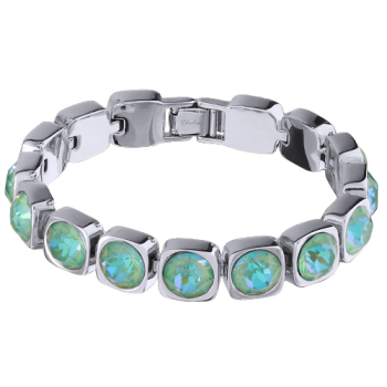 Изготовлено из ювелирного сплава на основе латуни с гальваническим покрытием родием. Изделие украшают кристаллы SW мятного цвета диаметром 8мм. Длина 17-19см.