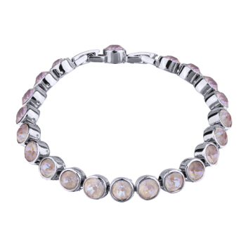 Изготовлено из ювелирного сплава на основе латуни с гальваническим покрытием родием. Изделие украшают кристаллы SW цвета пыльная диаметром 6мм. Длина 18-20см.