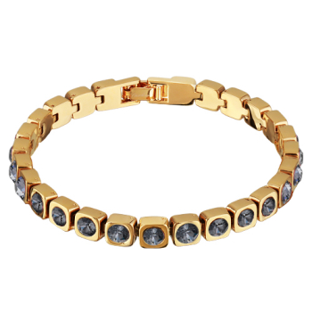 Браслет Теннис (кристаллы SW темно-серые 4мм; покрытие золото) 17-19см, Есть комплект