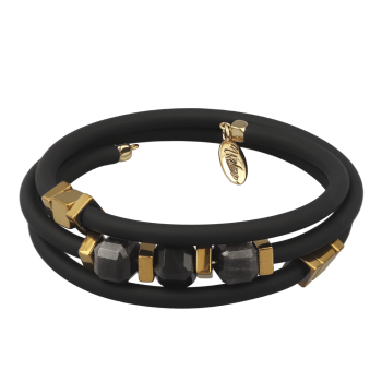 Изготовлено из ювелирного сплава на основе латуни с гальваническим покрытием золото. Изделие украшают натуральный агат и черный каучуковый шнурок.
