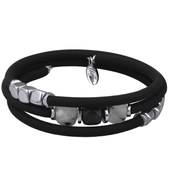Изготовлено из ювелирного сплава на основе латуни с гальваническим покрытием родием. Изделие украшают натуральный кварц серого цвета и черный каучуковый шнурок.