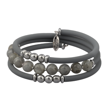Изготовлено из ювелирного сплава на основе латуни с гальваническим покрытием родием. Изделие украшает лунный опал и каучуковый шнурок цвета графит.