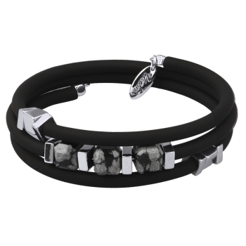 Изготовлено из ювелирного сплава на основе латуни с гальваническим покрытием родием. Изделие украшают обсидиан и черный каучуковый шнурок.