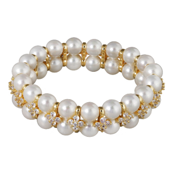 Изготовлено из ювелирного сплава на основе латуни с гальваническим покрытием золотом. Изделие украшают жемчуг Майорка диаметром 7мм и белый фианит Браслет на резинке.