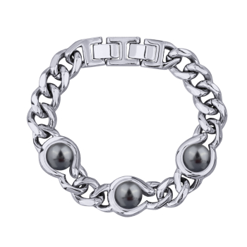 Изготовлено из ювелирного сплава на основе латуни с гальваническим покрытием родием. Изделие украшает майорский круглый жемчуг темно-серого цвета диаметром 12мм. Длина 18-20см.