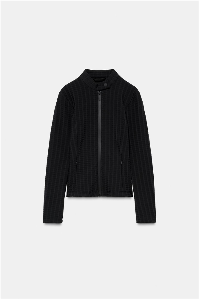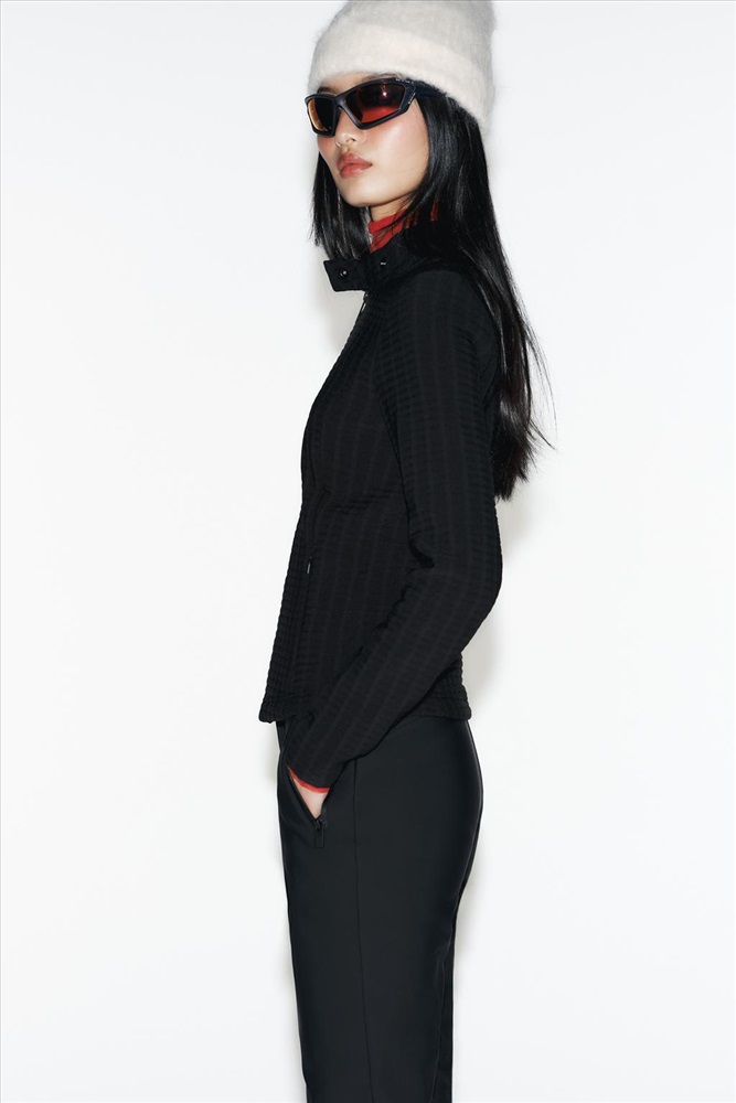 Close-fitting, lightweight jacket that facilitates layering. The fabric is breathable, which helps regulate body temperature and keeps the body cool for longer. In addition, it repels water, helping to prevent you from getting wet when exposed to light rain for short periods of time. Ruched top. COMPOSITION, CARE & ORIGIN CHARACTERISTICS