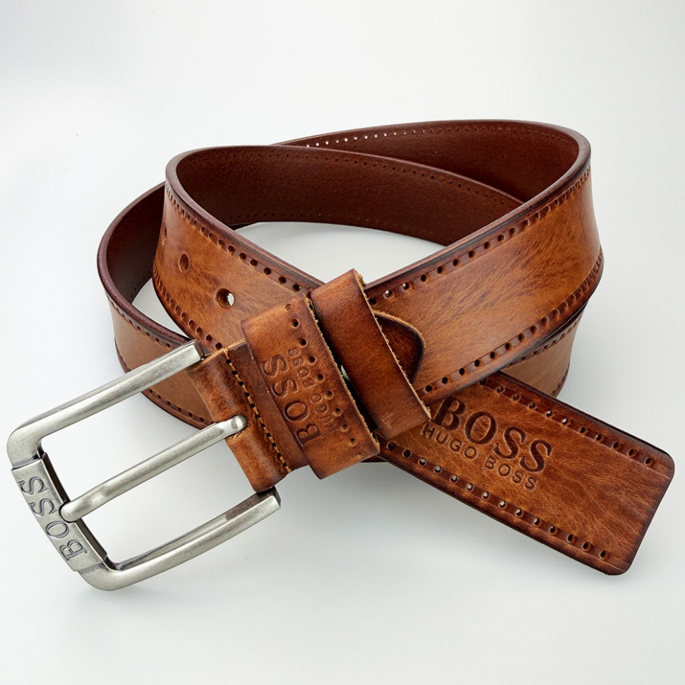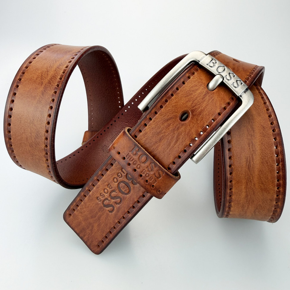 Ремень джинсовый, Boss из натуральной цельной кожи, шириной 40мм!