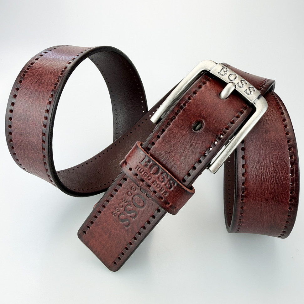 Ремень джинсовый, Boss из натуральной цельной кожи, шириной 40мм!