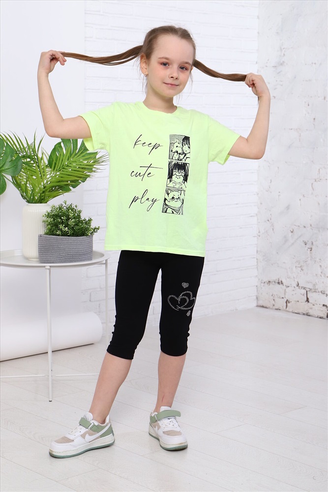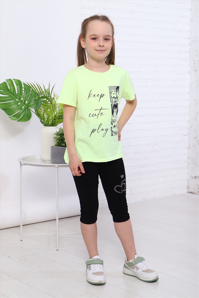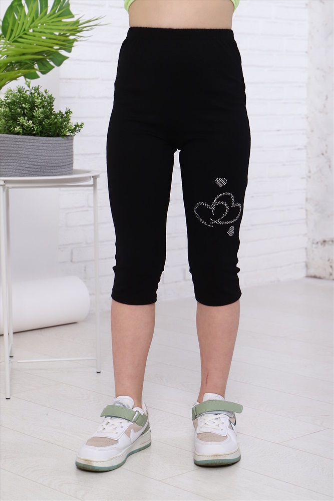 Бриджи детские, облегающего силуэта, длиной чуть ниже колена, из мягкой и дышащей трикотажной ткани вискоза. На передней половинке рисунок из страз, при указанной температуре не деформируются и выдерживают частые стирки, что очень важно при носке детской одежды. Замечательно сочетаются с любыми футболками, рубашками и туниками, на выбор из трёх самых актуальных расцветок.