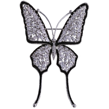 Изготовлено из ювелирного сплава на основе латуни с гальваническим покрытием родием. Изделие украшают фианит белого и черного цвета. Размер 7х5см.